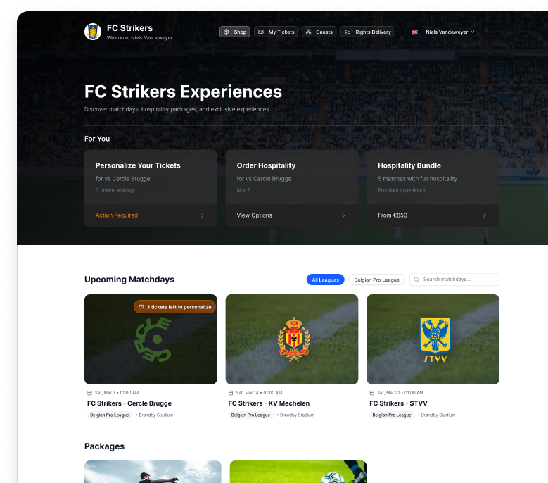 Manage invitations, guest lists, dietary requirements, and matchday check-in for every commercial partner. No email chains.